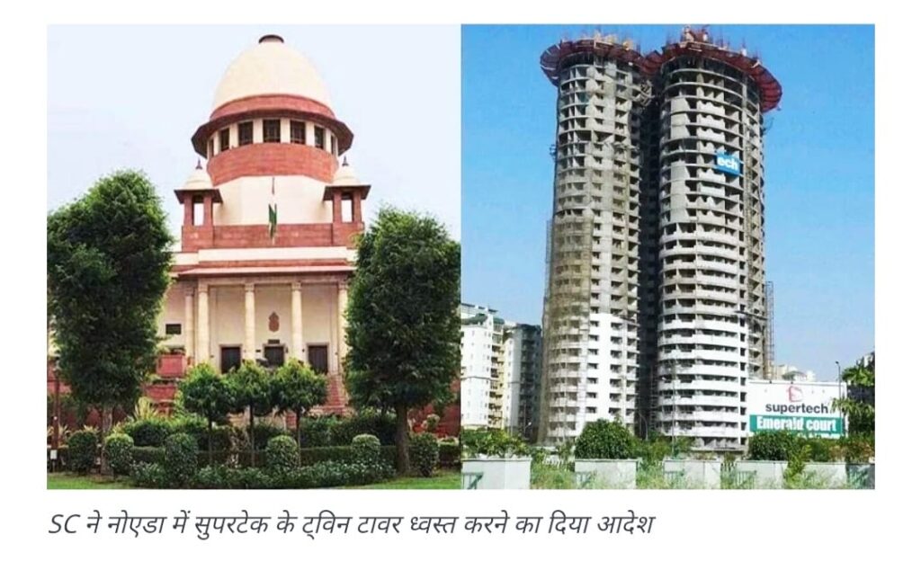 सुप्रीम कोर्ट ने नोएडा में सुपरटेक के ट्विन टावर ध्वस्त करने का दिया आदेश-40 मंजिला दो टावर-950+ फ्लैट, सुप्रीम कोर्ट ने कहा- 2 हफ्ते में गिराना शुरू करो, 28 फरवरी तक पैसा वापस करो