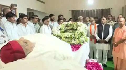 समाजवादी पार्टी के संस्थापक और पूर्व मुख्यमंत्री मुलायम सिंह यादव का सोमवार की सुबह निधन हो गया। उनके शव को सैफई में एंबुलेंस से निकाले जाने के समय बड़ी संख्या में लोगों के अलावा समाजवादी पार्टी के अध्यक्ष व यादव के पुत्र अखिलेश यादव, पार्टी महासचिव प्रोफेसर राम गोपाल यादव, पूर्व सांसद धर्मेंद्र यादव, और भाई व प्रगतिशील समाजवादी पार्टी (लोहिया) के अध्यक्ष शिवपाल सिंह यादव सहित परिवार के अन्य सदस्य वहां मौजूद थे।